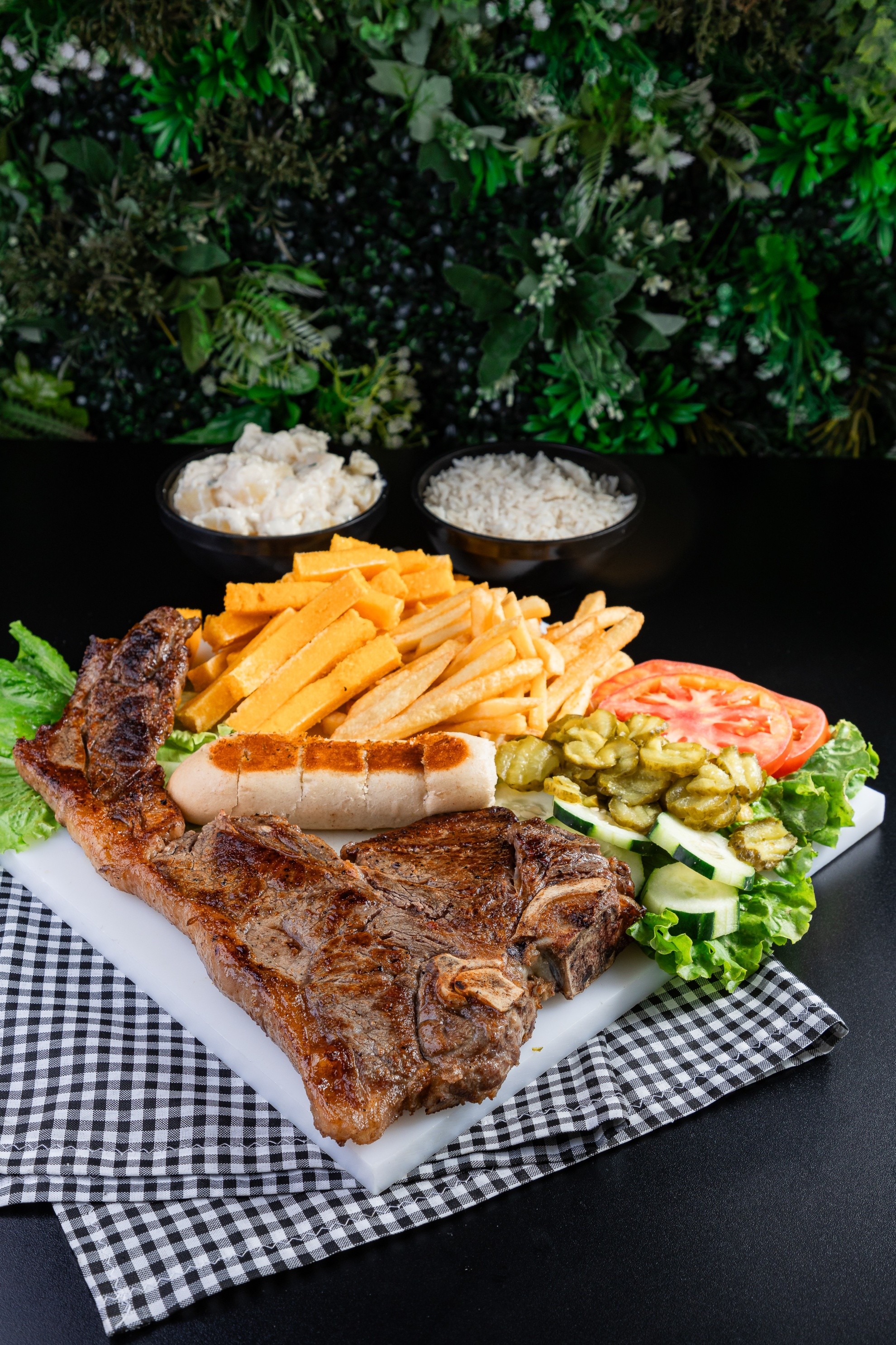Maionese, Fritas, Filé Duplo, pão de alho, arroz, polenta, Salada, Farofa